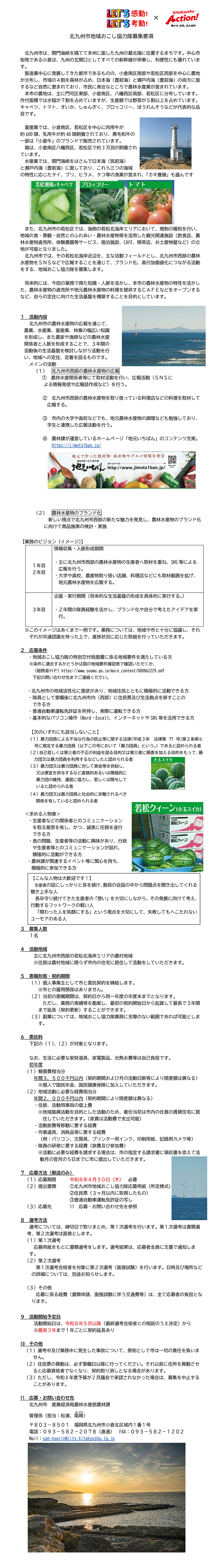 北九州市地域おこし協力隊募集要項