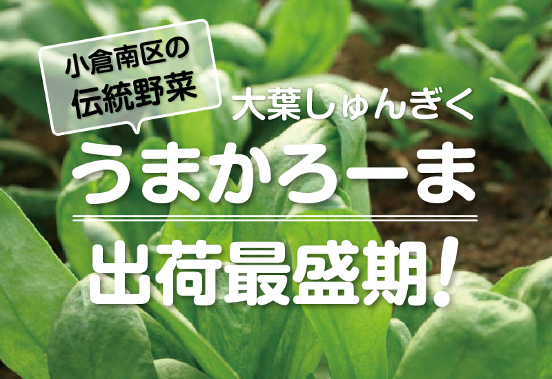 小倉南区の伝統野菜である「大葉(おおば)しゅんぎく」=「うまかろーま®」(令和6年8月に商標登録)の出荷が、最盛期を迎えています。今年度は、12月から福岡市中央卸売市場へ初出荷を試みるなど、新たな販路開拓・認知度向上に取り組んでいます。さらに、北九州市中央卸売市場のストックポイントを活用し、関東圏への販売も強化していきたいとしています。