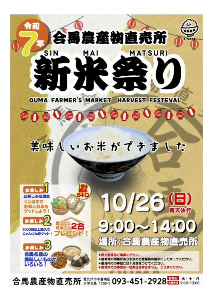 合馬農産物直売所様より「新米祭り」のご案内です。