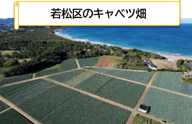 北九州市若松区はキャベツやブロッコリー、だいこん等の露地野菜の栽培が盛んな地域です。キャベツは西日本有数の産地であり、若松潮風Ⓡキャベツとしてブランド化に取り組み、全国的に知名度も上がってきています。今年からブロッコリーもブランド化し若松潮風Ⓡブロッコリーとして出荷が始まるなど、生産者一丸となって若松潮風Ⓡブランドの更なる認知度向上に向けた取組みを行っています。